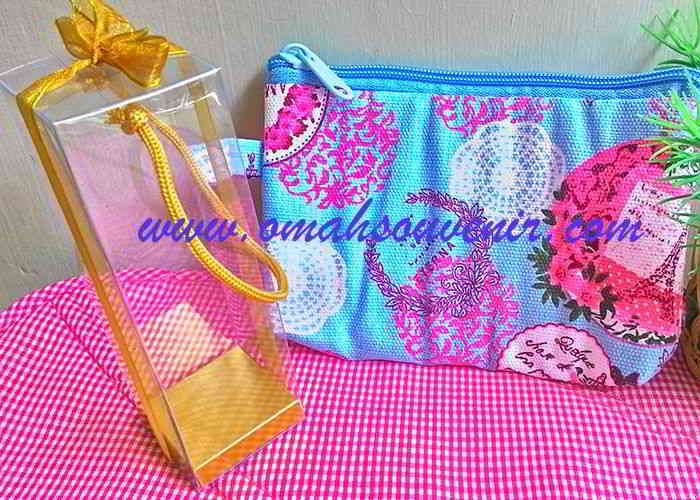 Product #:Dompet Kanvas Packing MikaDompet kanvas ini dengan packing mika. Untuk dompetnya sendiri dari bahan kanvas. Dalam dompet kanvas ini di dalamnya kain furing. Rit dompet mika ini lebih besar dari biasanya, Ukuran dompet kanvas ini kurang lebih 17 cm x 14 cm. Mika dompet kanvas ini diberi pegangan dan pita emas.